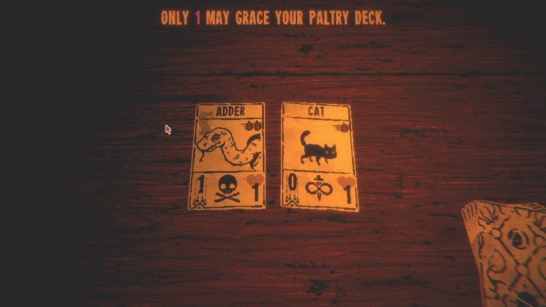 이 작업을 완료하면 Leshy가 카메라로 사진을 찍어 화면을 가리고 다음 달리기가 시작되는 지점에서 화면을 가리게 됩니다. 또한 생성한 데스카드는 무작위 풀에 추가되고 시작 덱에 추가될 수 있습니다. 가능한 한 자주 이것을 활용하십시오. 때로는 전세를 역전시킬 좋은 카드 한 장만 있으면 됩니다.