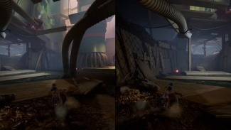 이 퍼즐을 풀려면 지난번과 비슷한 작업을 수행해야 합니다. 한 플레이어는 진공관의 배출구 노즐을 타고 근처 선반의 빨간색 버튼을 가리킵니다. 다른 플레이어는 진공관 입구로 들어갑니다. 난간에 착지한 후 점프하고 버튼을 두드려 기류를 역전시킵니다. 이제 같은 과정을 반복하고 튜브의 다른 쪽 끝이 다음 버튼을 향하도록 합니다. 튜브에 들어간 플레이어는 두 번째 버튼을 두드려 검은 웅덩이에서 깔때기 진공을 드러냅니다.