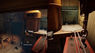 회로 차단기에서 왼쪽을 보면 책상에 있는 세 번째 퓨즈가 있습니다. 근처 상자를 점프 플랫폼으로 사용하고 퓨즈를 추적하십시오. 유리병 안에 갇히게 됩니다. 플레이어 중 한 명이 항아리 위로 올라간 다음 점프하고 두드려 항아리를 깨야 합니다.