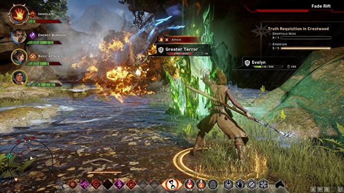하지만 대부분의 경우 일을 끝내는 유일한 방법은 검, 방패, 지팡이, 주문을 들고 나가서 두개골을 부수는 것입니다. 인퀴지션은 전투를 극적으로 변화시킵니다. 가장 큰 차이점은 이제 힐러나 전투 중 체력 충전이 없다는 것입니다. 대신에 각 맵을 통과할 때마다 더 많이 열리면서 치유하고 치유 물약을 보충할 수 있는 캠프가 있습니다. 일반 물약은 무료이며 내가 사용한 모든 것입니다. 하지만 재료를 만들어야 하는 더 좋고 다른 것을 발견할 수 있을 뿐만 아니라 가지고 있는 것을 업그레이드하여 드래곤 에이지의 끊임없는 약초 재배와 자동 치유 사이의 좋은 중간 지점을 제공합니다. 이것은 또한 사용자 정의 장비 제작, 무기 업그레이드 및 각 지도의 모든 퀘스트 확인과 같은 측면과 관련하여 전체 게임이 작동하는 방식입니다.