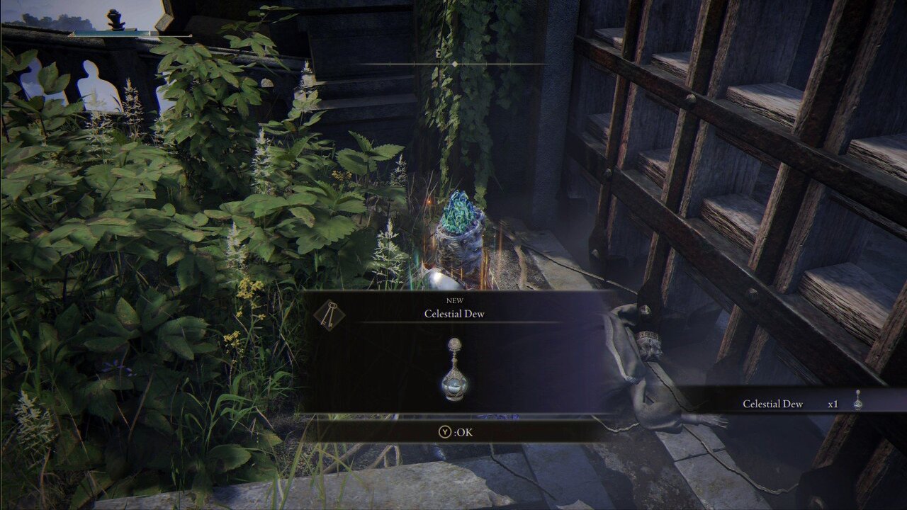 - 그곳에서 게이트 바로 옆에 있는 시체에서 Celestial Dew를 찾을 수 있습니다.