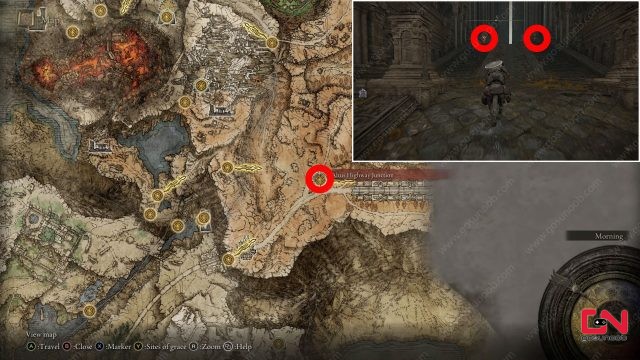 Elden Ring에서 Tree Sentinel 방패를 찾고 최종적으로 갑옷과 무기로 세트를 완성하려면 Liurnia의 북쪽과 Altus Highway Junction이라는 은혜의 장소로 향하십시오. 아래 스크린샷에서 해당 위치를 보여드리겠습니다. 거기에서 거대한 계단을 올라갑니다. 장소는 강한 적과 함께 크롤링하므로 매우 조심하십시오. 계단 꼭대기에서 말을 타고 한 명이 아닌 두 명의 나무 센티넬과 싸워야 합니다. 그것은 힘든 싸움이므로 첫 번째 전투에서 그들에 대해 배운 것을 기억하십시오(자세한 내용은 아래 참조). 둘 다 죽으면 Erdtree Greatshield와 Hero's Rune(1)을 받게 됩니다.