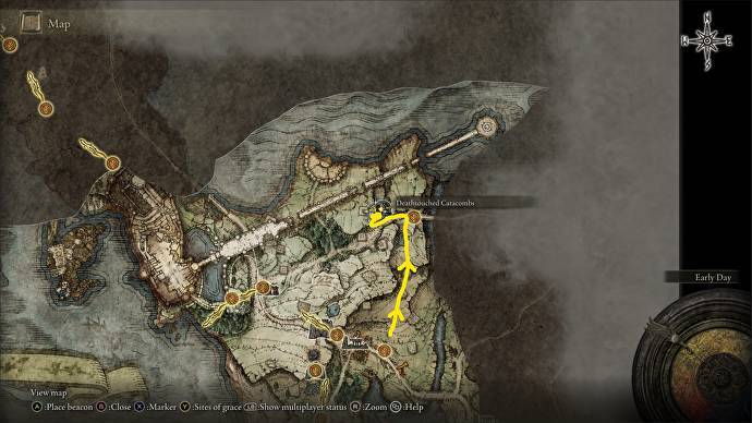 아직 Uchigatana가 없다면 Stormhill 북부에 있는 Deathtouched Catacombs 깊숙한 곳에 또 다른 Uchigatana가 있습니다.
