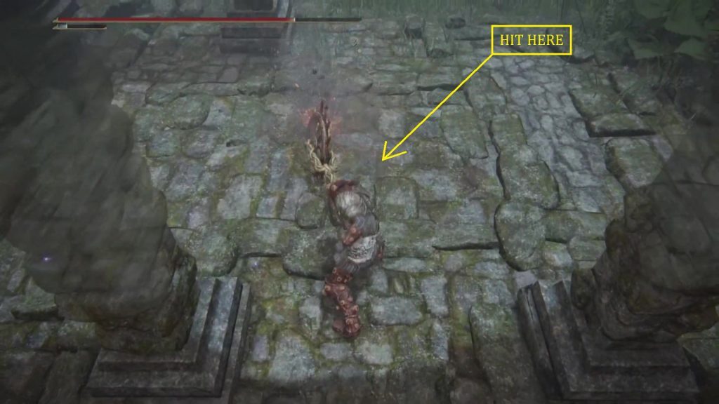 이 폐허는 아래 사진과 같은 지점에 환상의 바닥이 있습니다. 이 지점을 누르면 바닥이 사라지고 지하로 통하는 경로가 나타납니다.