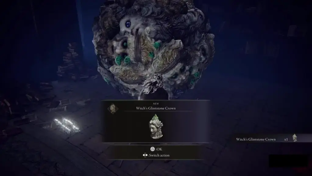 황금 표지판을 선택하면 Jerren을 죽여야합니다. 이것은 당신에게 Accentric의 갑옷 세트 를 줄 것 입니다. 싸움이 끝난 후 Sellen과 대화하면 그녀가 Glintstone Kris 단검을 줄 것입니다. 마녀의 글 린트 스톤 왕관 은 아래와 같이 라이브러리에서 수집할 수 있습니다 . 그녀의 상점에서 주문을 구입할 수도 있습니다.