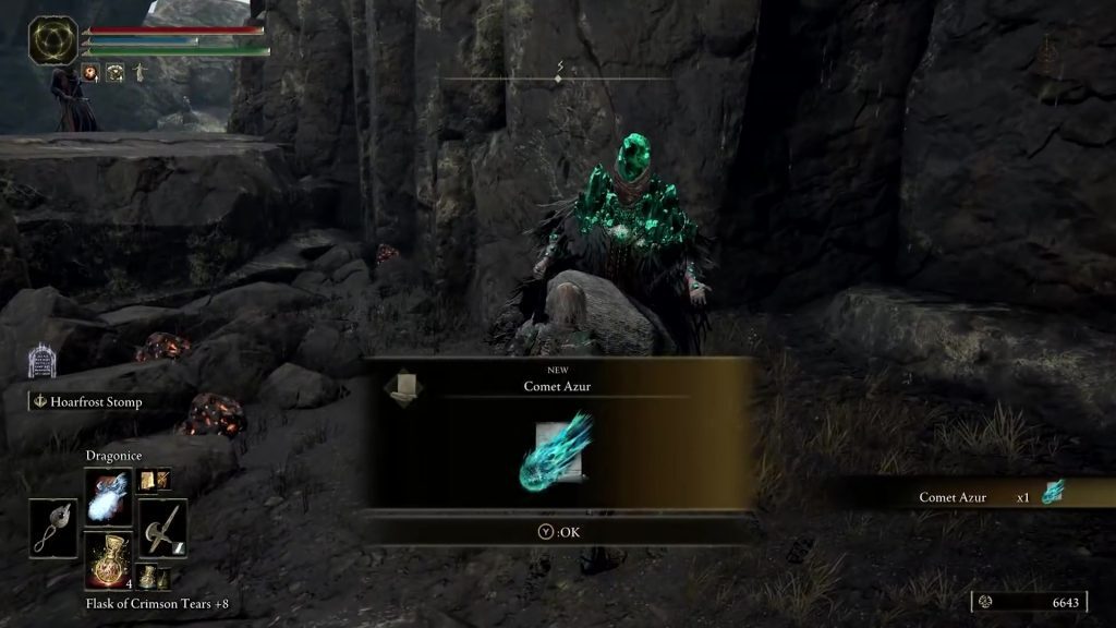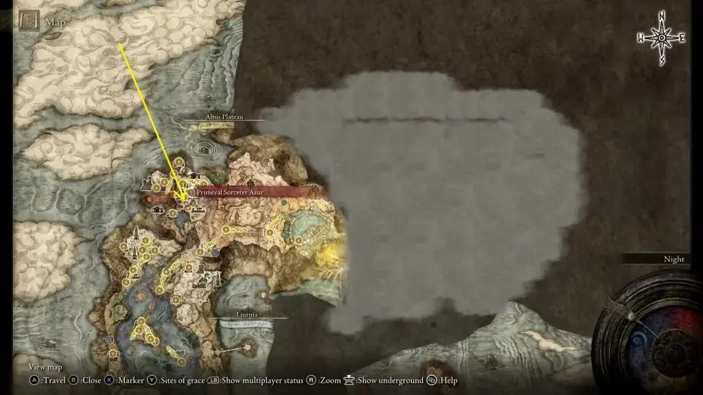 게임 후반부에 Altus Plateau 에 도달할 때까지 퀘스트를 계속 진행할 수 있습니다 . 여기에서 Sorcerer Azur를 찾아 Comet Azur 주문을 받아야 합니다.