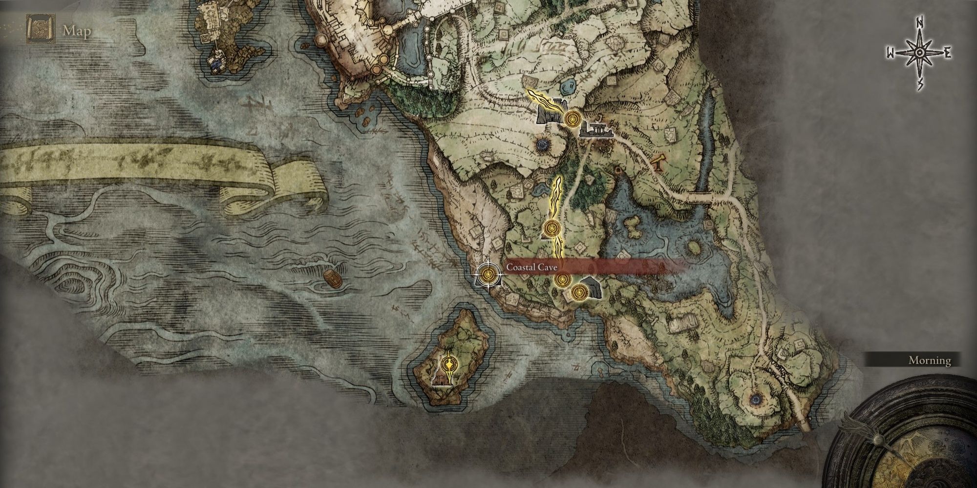 엘든 링 해안 동굴 지도 위치