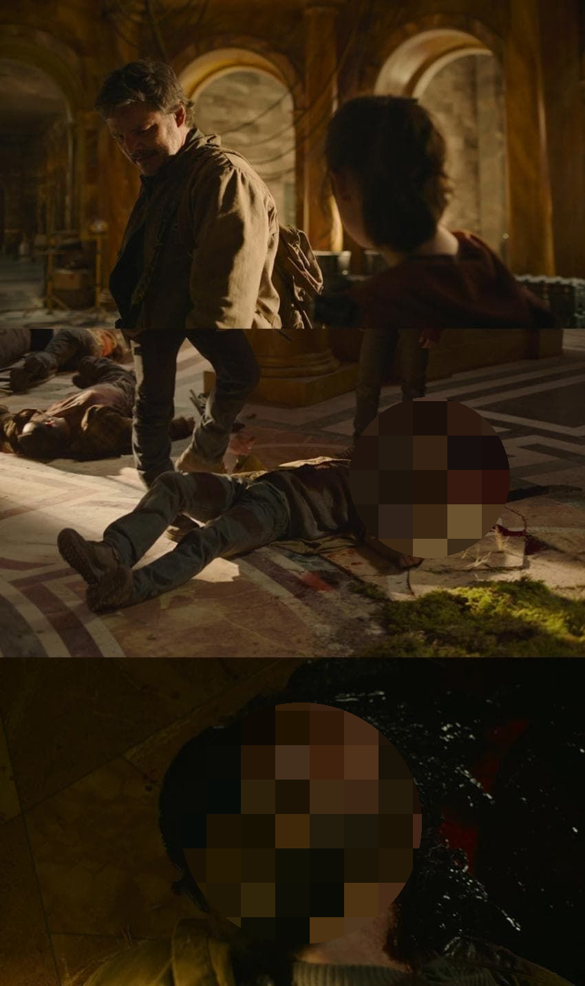 에피소드의 45분을 막 지난 시점에서 Joel(Pedro Pascal)은 시체 중 하나를 장화로 뒤집는데, 그 중 하나는 위 이미지에서 볼 수 있는 The Last of Us 쇼러너이자 비디오 게임 감독인 Neil Druckmann처럼 보입니다.